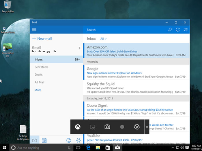 ابزار جدید Game DVR ویندوز ۱۰، برای ضبط کردن لحظههای تاریخی و جذاب صحنههای بازی ساخته شده است. اما در واقع اجازهی ضبط ویدیو از هر نرمافزار در حال اجرای دسکتاپ یا یونیورسال را هم به کاربر میدهد (اگرچه در محیط خود سیستمعامل مانند مرورگر فایل ویندوز و دسکتاپ عمل نمیکند).