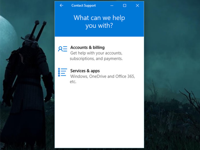 تنها کافی است به دنبال نرمافزار Contact Support درون منوی All Apps بگردید. این نرمافزار میتواند شما را به سمت انجمنهای تخصصی مناسب برای کمک خواستن در مورد یک مشکل یا حتی ارتباط با نمایندهی بخش پشتیبانی مایکروسافت از طریق گفتگوی آنلاین یا تلفن هدایت میکند.
