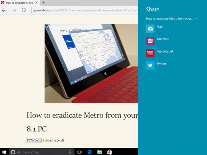 مرورگر جدید ویندوز ۱۰ تحت عنوان اج، تجربهی وبگردی مایکروسافت را با وجود موتور جستجوی سریع، قدرتمند و ترفندهای جذابی مانند هوشمندی در عملکرد و یکپارچگی با کورتانا به منظور ارائهی اطلاعات مکملی در مورد موضوع جستجو شده را وارد عصر مدرنی میکند. اما جنبهی تازگی مرورگر اج قابلیت Reading View و Reading List آن است که برای اولین بار در نرمافزار اینترنت ایکسپلورر مدرن ویندوز ۸ مورد استفاده قرار گرفت و هماکنون همراه با بهبودهای زیادی به ویندوز ۱۰ هم راه یافته است.