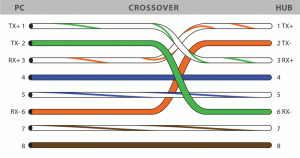 در مواردی که هدف اتصال دو کامپیوتر به هم یا اتصال دو سوئیچ به هم باشد، از کابل ضربدری یا Crossover استفاده میشود.