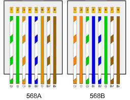 در این استاندارد ترتیب رنگ بندی سوکت کابل شبکه بصورت زیر میباشد: